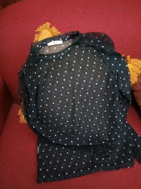 Marca mango ,talla ch, semitransparente con boleado en color blanco,detalles de repujado en las mangas en excelente estado