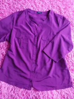 Blusa 3x morada. Hermosa blusa color betabel, con botones al frente manga tres cuartos, amplia tela fresca, en excelentes condiciones segunda americana