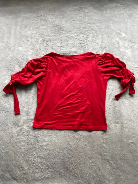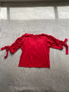 Blusa. Blusa color rojo de algodón, manga 3/4 con corrugado y moño en las mangas