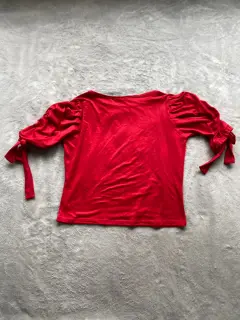 Blusa color rojo de algodón, manga 3/4 con corrugado y moño en las mangas