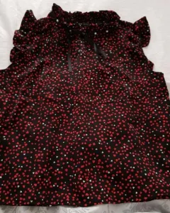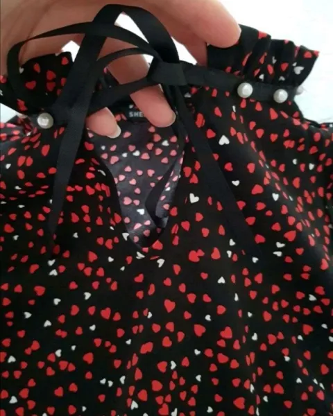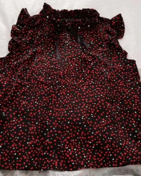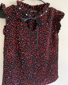 Blusa. Preciosa blusa, hombros descubiertos negro con corazones rojos, detalle de perlas en cuello con listón, 100% poliester