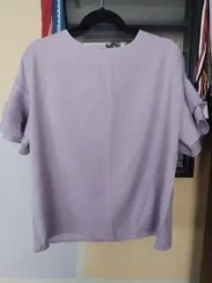 Blusa. Blusa color Lila, talla L, marca Shein, botón pequeño en la parte de atrás, olanes en los brazos, manga corta