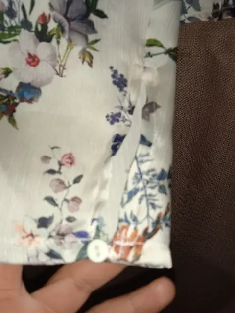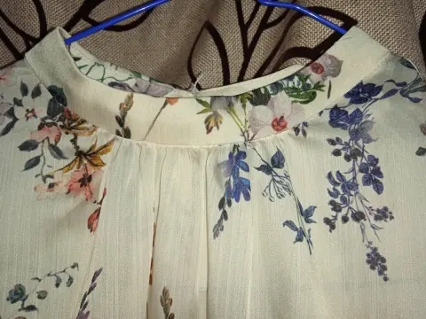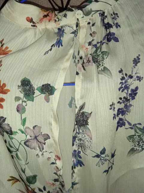 Blusa estampado de flores, botón trasero funcionando al 100, cuello redondo, manda larga, con detalle en la muñeca, y abierto de la parte de la espalda superior