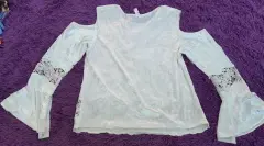 Blusa. Blusa de terciopelo, color dorado, talla M con diseño de encaje y bordado en las mangas y parte de enfrente