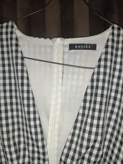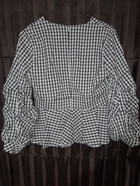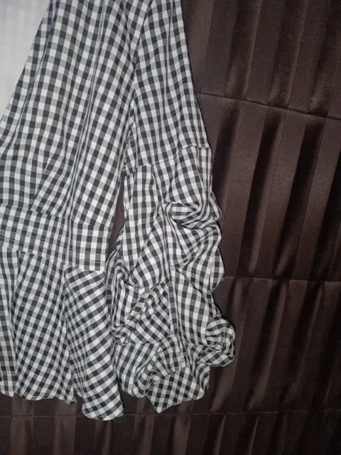 Blusa. Bonita blusa a cuadros negro con blanco,escote en V, mangas plisadas