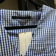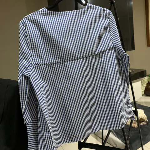 Bonita blusa a cuadros marino y blanco talla 30 tipo Zara M, dice L pero viene reducida, con linda tela con caída casi no se arruga y corte en A, el detalle de la manga@- hace verse hermosa y diferente , totalmente nueva a estrenar con etiqueta , medidas axilas 51, cintura 70, largo 59, mangas 59
