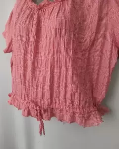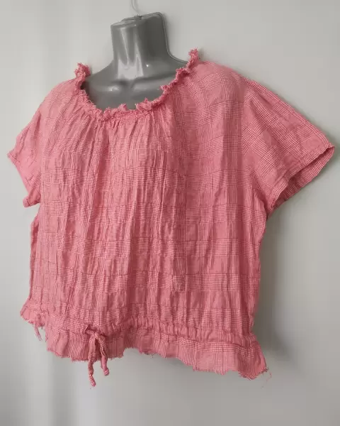 Hermosa blusa color rojo con blanco, se ajusta de la parte de abajo. La tallas es entre L y XLMedidas aproximadas:Largo 50 cmDe axila a axila 63 cm