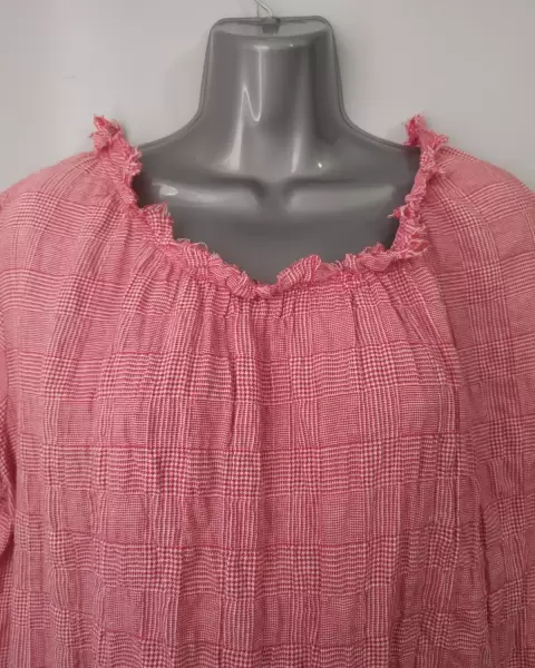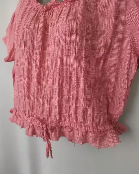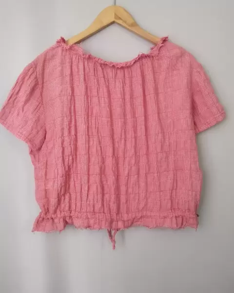Blusa a cuadros roja. Hermosa blusa color rojo con blanco, se ajusta de la parte de abajo. La tallas es entre L y XLMedidas aproximadas:Largo 50 cmDe axila a axila 63 cm