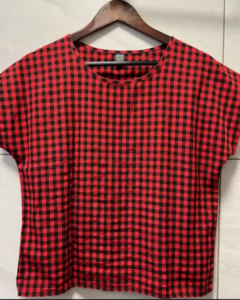 Blusa a cuadros SHEIN. SHEIN Top de manga murciélago a cuadros Hombro: 60.5 Largo 59.5 pecho: 102