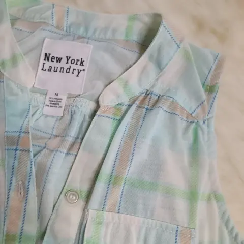 Blusa a cuadros verde. ¡Verde con estilo! Blusa verde menta a cuadros, talla M. ¡Comprala ya y refresca tu look! 🌿👗