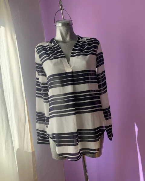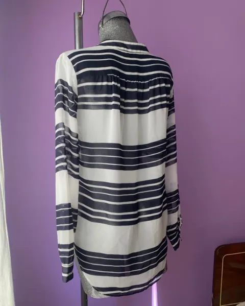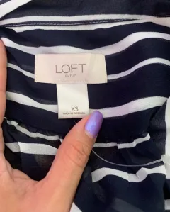 Hermosa blusa loft a rayas, blanca con azul. Manga larga.Talla XS pero también da a chica.Sus medidas son: 75cm de largo, 43cm de axila a axila y 61cm de manga.