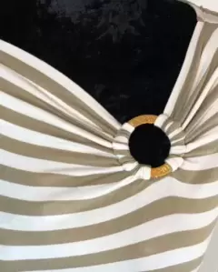 Lindísima blusa Michael Kors, es color blanca con líneas beige y con un hermoso aro con el grabado de la marca en color dorado, desde luego es una blusa original.