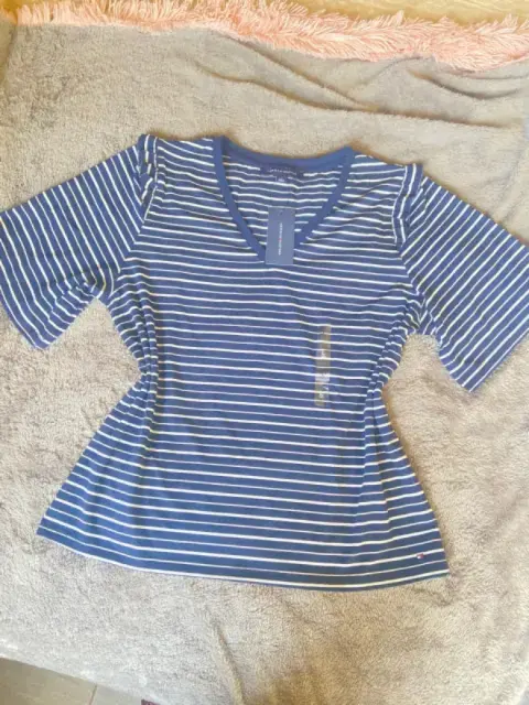 Blusa a rayas Tommy Hilfigher. Hermosa 🤩 y suave blusa en color azul marino y rayas blancas, tiene un poco de strech, súper combinable Medidas: axila a axila 53cm y largo 62cm