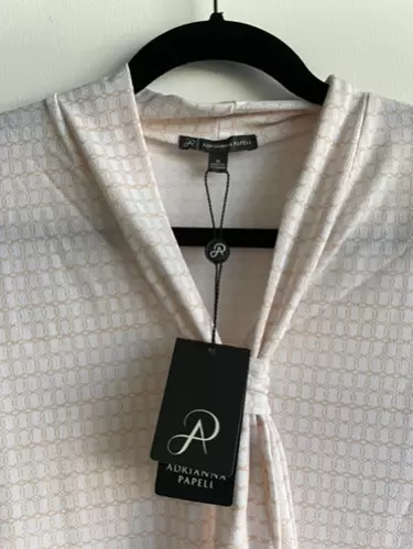 Hermosa y fresca blusa marca Adrianna Papell, talla:M, está nueva con su etiqueta original. Se compro en Estados Unidos. No tiene detalles, mide 34cm de hombro a hombro, 51 cm de axila a axila y 65cm de largo.