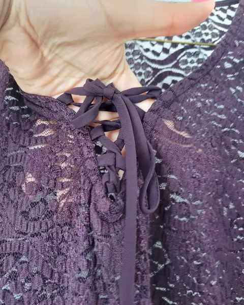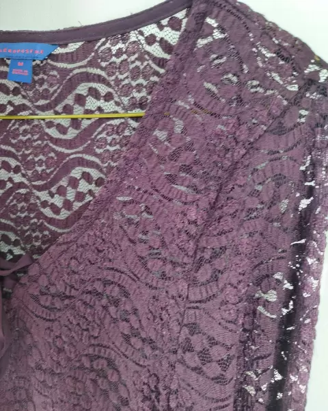 Hermosa blusa de encaje talla Mediana original Aeropostale en precioso color berenjena solo la use una vez no soy mucho de transparencias tiene un bello detalle en el pecho tipo corset, es muy suavecita al tacto y no tiene detalles, no esta corrida de hilos ni nada, como nueva.