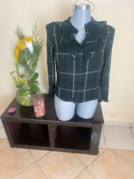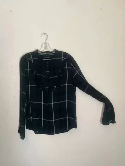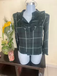 Blusa Algodón a Cuadros. Blusa manga larga , con Olán al frente , botones al frente tipo camisa , cuello Mao