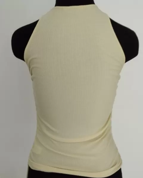 Blusa amarilla. Blusa amarilla con tiras a los lados, tiene un pequeño detalle de un puntito negro