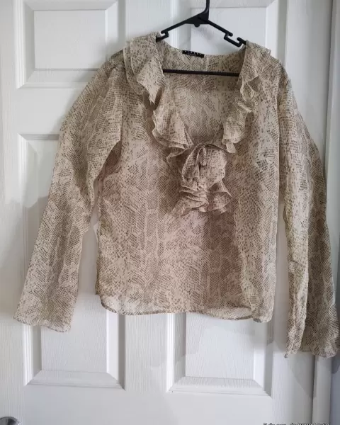 Blusa animal print. Hermosa blusa animal print, talla mediana, manga larga y con olanes en cuello