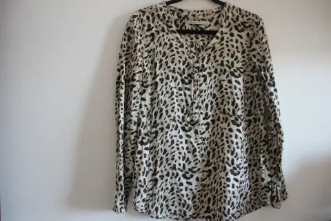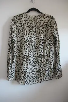 Blusa animal print. Blusa de manga larga con diseño animal print, los botones son redondos. No tiene detalles, no rota y no manchada. Marca Hollyland, talla G mide 72 cm de largo, 52 cm de axilas, hombro a hombro 40 cm (medidas aproximadas)