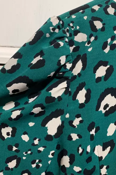 Blusa animal print. Blusa animal print manga larga dice talla S pero viene algo amplía, la manga es ligeramente abullonada trae un botoncito en cada puño y cierre oculto por atrás de axila a axila mide 47 y de largo 58
