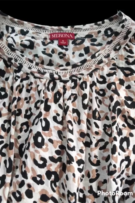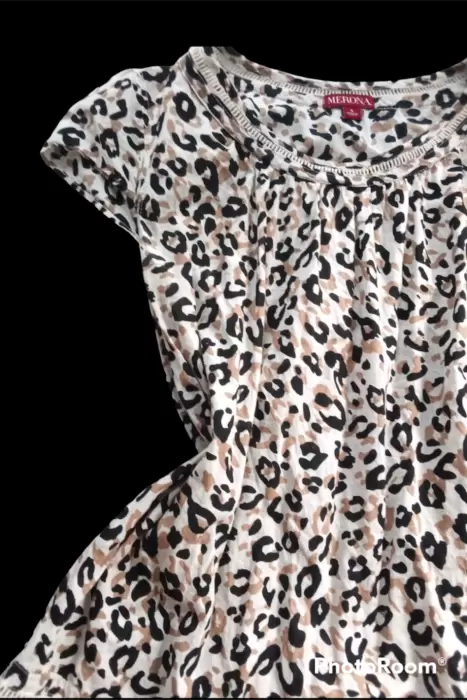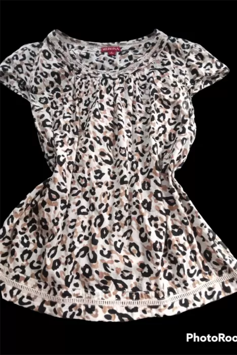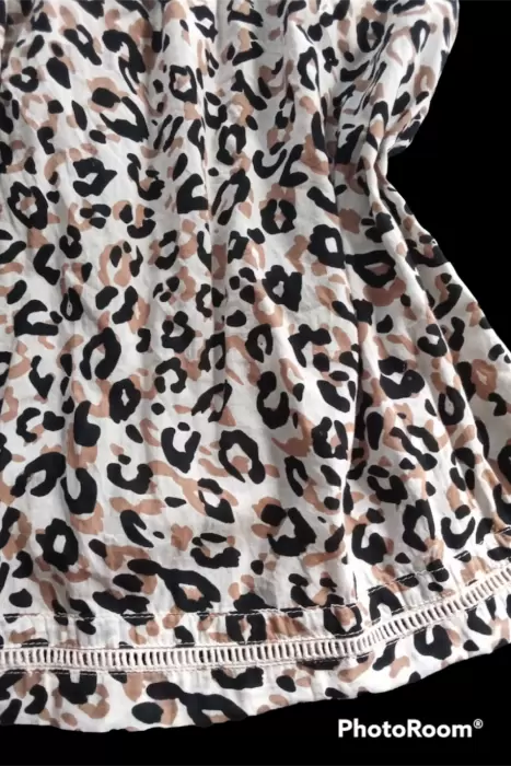 BLUSA ANIMAL PRINT CUTE. Linda blusa de estampado animal print, escote redondo, poco amplia linea A, trae detalles de encaje en la parte del escote y abajo. La tela es muy fresca y luce muy bonita.
