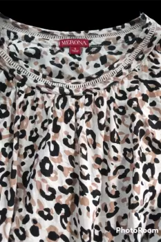 Linda blusa de estampado animal print, escote redondo, poco amplia linea A, trae detalles de encaje en la parte del escote y abajo. La tela es muy fresca y luce muy bonita.