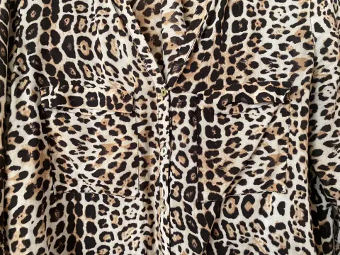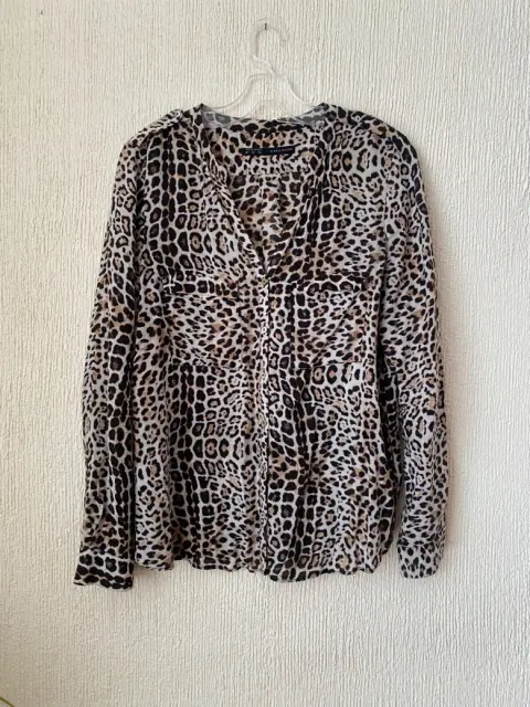Hermosa blusa con estampado animal de la marca Zara, la tela es algodón, tiene manga larga y bolsas delanteras.Talla M, en perfecto estado!!