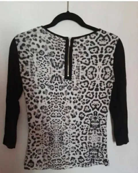 Blusa animal print negra. Blusa estampada animal print blanco/negro, talla S pero puede quedar también a M. La usé pero sigue estando en perfecto estado.