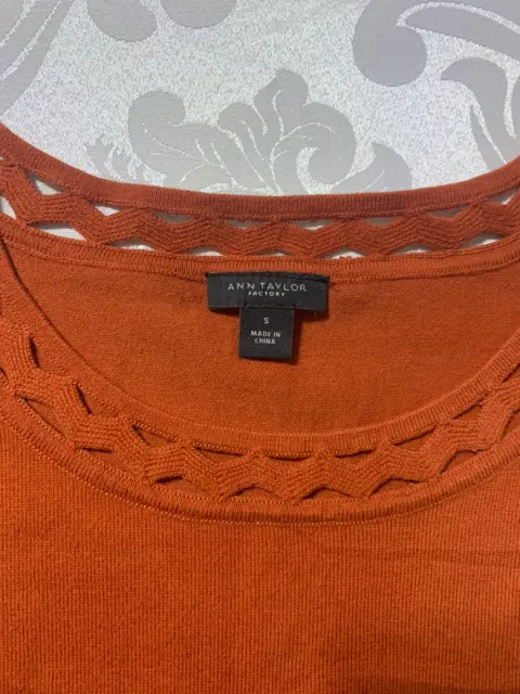 Blusa Ann Taylor. Blusa de manga corta, cuello redondo calado, tela 100% de algodón. Queda a una talla S/M.Medidas/ busto: 44 cm, cintura: 43 cm, largo: 56 cm .