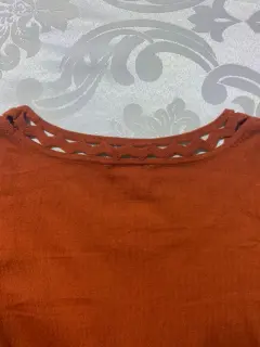 Blusa de manga corta, cuello redondo calado, tela 100% de algodón. Queda a una talla S/M.Medidas/ busto: 44 cm, cintura: 43 cm, largo: 56 cm .