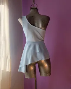 Blusa asimétrica azul cielo. Hermosa blusa asimétrica color azul cielo, talla M. Le va bien a una chica también. Sus medidas son: 43cm de largo, 72cm de cintura, 40cm de axila a axila y 60cm de largo en el lado largo.
