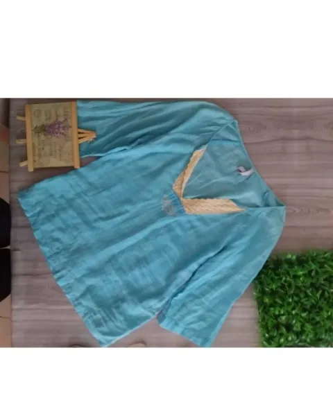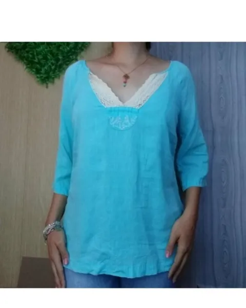 Preciosa blusa manga 3/4, muy fresca y cómoda, tiene encaje en el escote v Muy Hermoso, queda a talla Chica muy bien , ideal para irse a la playa.