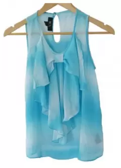 Blusa azul cielo sin mangas con un moño al frente tela súper fresca Ideal para primavera verano, tiene botón en la espalda Talla XS