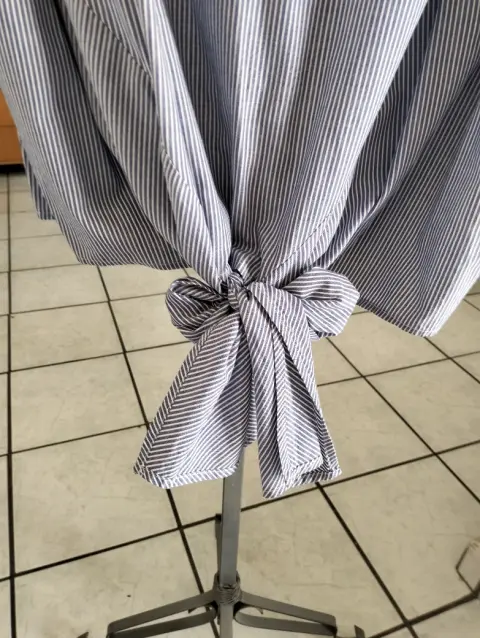 Fresca blusa en dos colores suelta con botones en espalda lisa en la parte de enfrente con cintas en la parte baja para dar adorno de moño manga corta