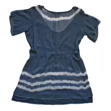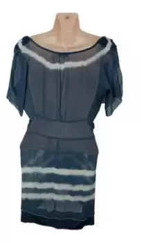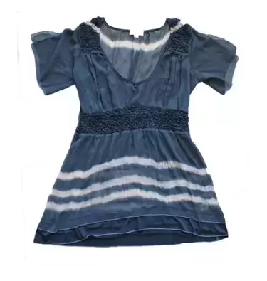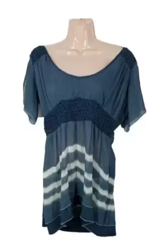 Blusa azul con blanco talla M. Blusa azul con blanco manga corta volada de tela súper delgadita y Fresca y semi transparente con escote redondo bajo, con plisado elástico al frente y en los hombroselástico