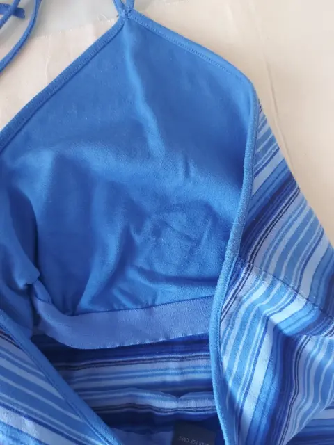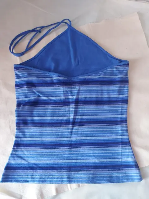 Blusa azul con escote en la espalda. Bonita y fresca blusa azul, elastica, media espalda descubierta, protección al frente para el pecho, se amarra del cuello.