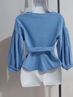 Blusa azul de mangas abollanadas