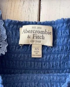 Blusa azul de tirantes Abercrombie. Talla: XS Medidas: 27 cm axila y 43 cm de largo Blusa de algodón, corte A con tirantes, la parte del busto es ajustada (resorte), los tirantes y la parte del final son distintas telas y distintos tipos de azul.