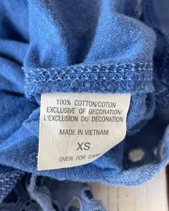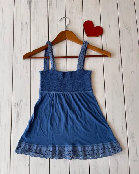 Talla: XS Medidas: 27 cm axila y 43 cm de largo Blusa de algodón, corte A con tirantes, la parte del busto es ajustada (resorte), los tirantes y la parte del final son distintas telas y distintos tipos de azul.