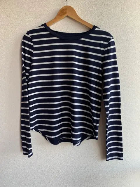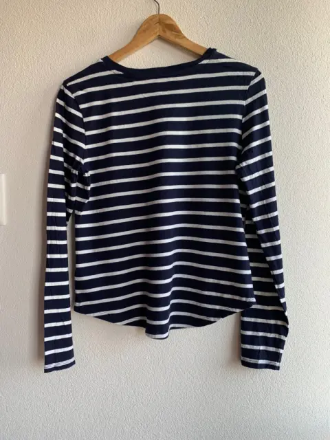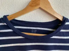 Blusa “GAP”Talla S pero en amplia, da a un MColor azul marino fuerte con blancoEs una básicaMedidasAnchoLargoID 50 - 16No tiene detalles y está lista para envio