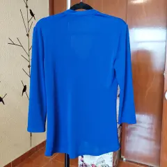 Blusa azul manga 3/4. Puesta una vez. Envio sabados tal vez antes. No hago intercambios, apartados, entregas personales.