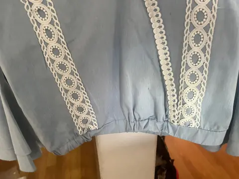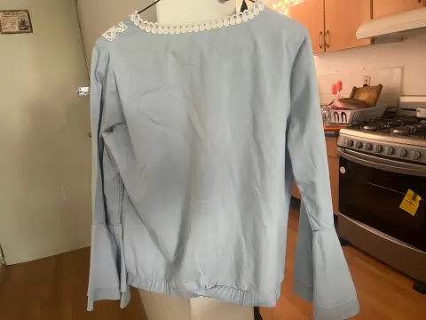 Blusa azul manga ancha cklass con encaje blanco en medio , resorte en la parte de abajo y manga ancha