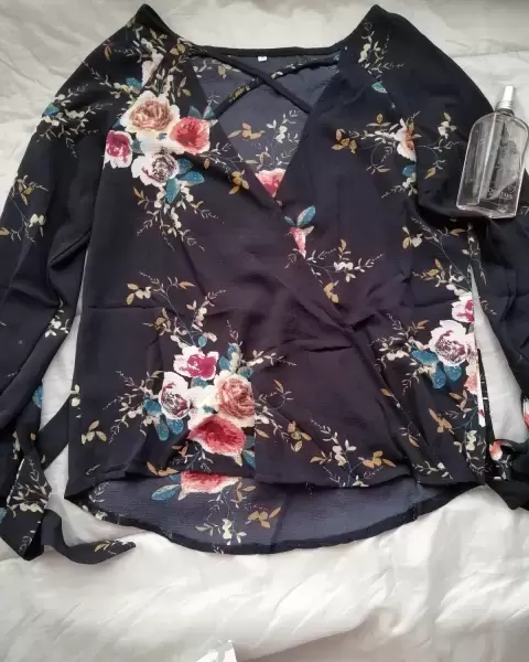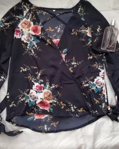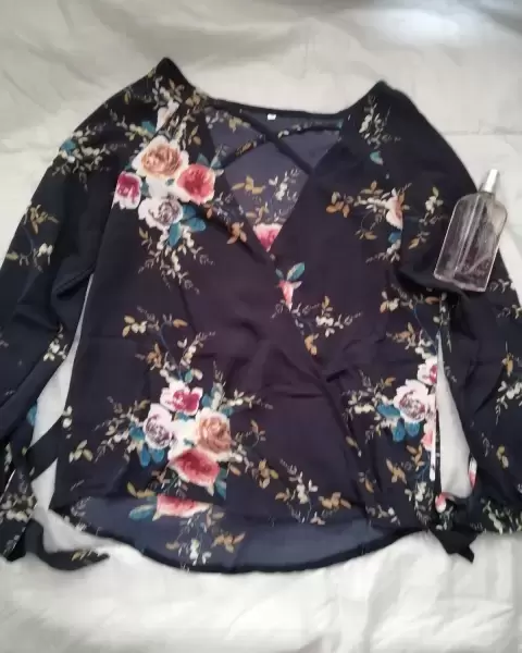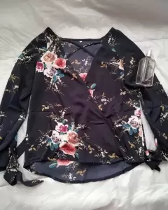 Blusa azul marino con flores. Bonita blusa azul marino floreada, tela de gasa fresca, entra nueva lista para que la estrenes