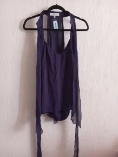 Blusa azul marino transparente. Blusa estilo Bluson de transparencia, trae su blusa de tirantes sobrepuesta, con cintas para corbatin.