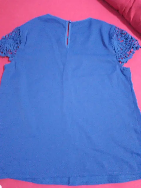 Blusa azul rey. Blusa de tela delgada y suave, no transparenta, color azul vivo, ligeramente suelta.