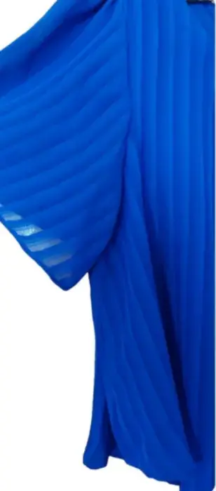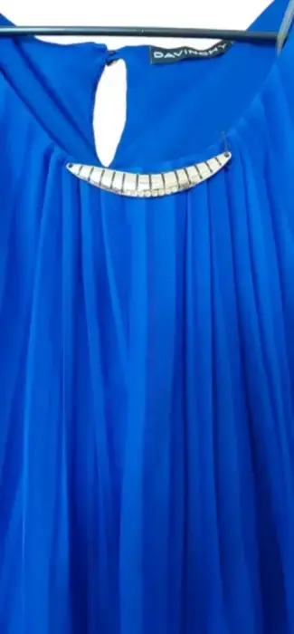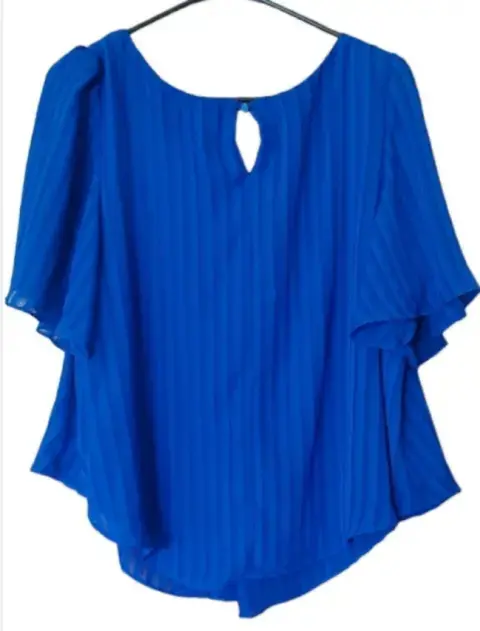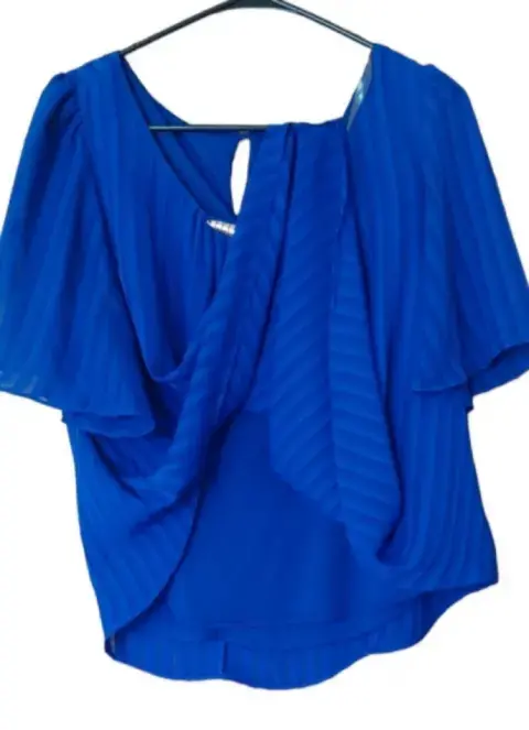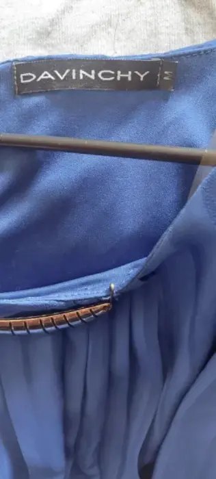 Blusa asimétrica semitransparente con forro interno, marca Davinchy (si reconocida, se vende en tiendas departamentales tipo Liverpool) talla mediana, color azul, cuello redondo con aplicación (una esquina descocida pero se arregla), tableada. Escaso uso. Fresca y comoda ideal para esta temporada 🔥