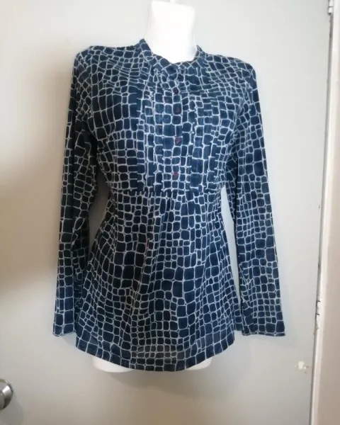 Hermosa bluza azul turquesaTalla XL original muy fresa su telas y transpirable , cuenta con detalles en blanco y botones en el pecho.
