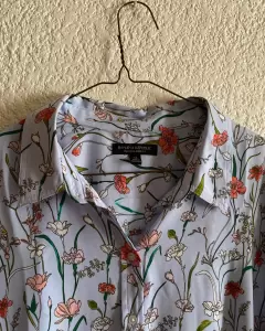 Blusa banana republic. Blusa de manga larga , la tela es poliéster , el fondo es azul con flores. Esta súper bonita