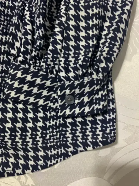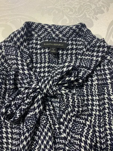 Blusa Banana Republic. Blusa manga larga, cuello alto con extensión a pañuelo, tela ligera con estampado de pata de gallo. Queda a una talla S/M, no estira.Medidas/ busto: 53 cm, cintura: 51 cm, largo: 57 cm.