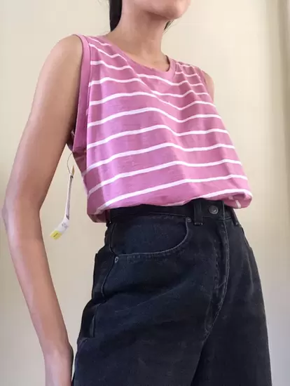 Esta blusa es básica para nuestro closet, sin mangas y súper fresca. Tiene etiqueta, cuello redondo.